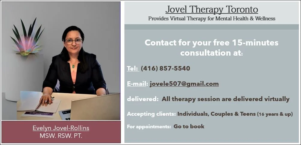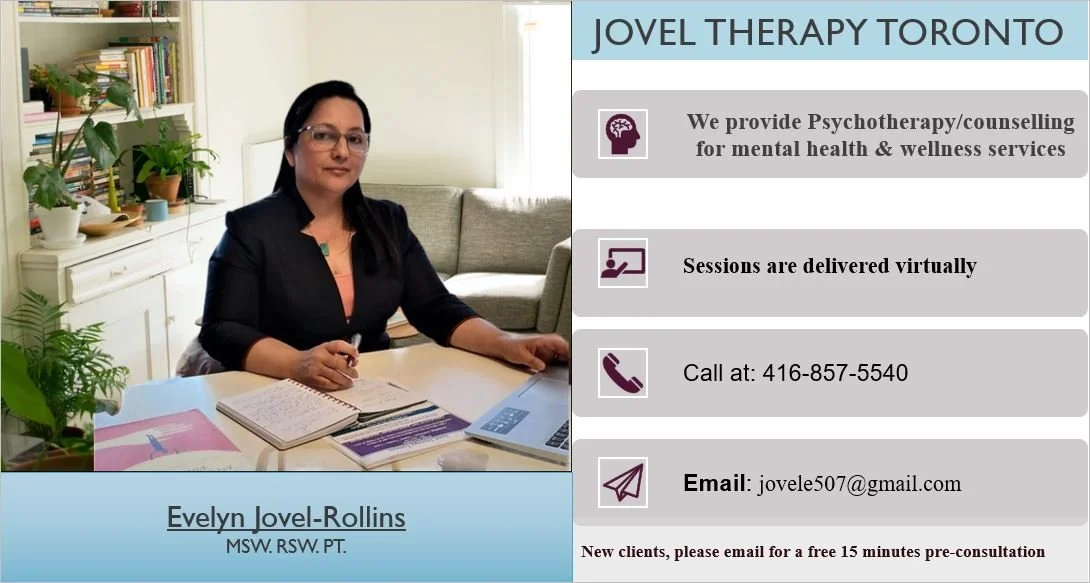 NOTE: If you find my information and practice listed in FindHealthClinics, please do not provide any information to them. I have not giving them permission to use my information in their platform. I never will ask for your emails not to add it on lists, unless you register for a therapy session in my Jane calendar, became a Jovel Therapy Toronto client and talk to me, otherwise is it is illegal site.